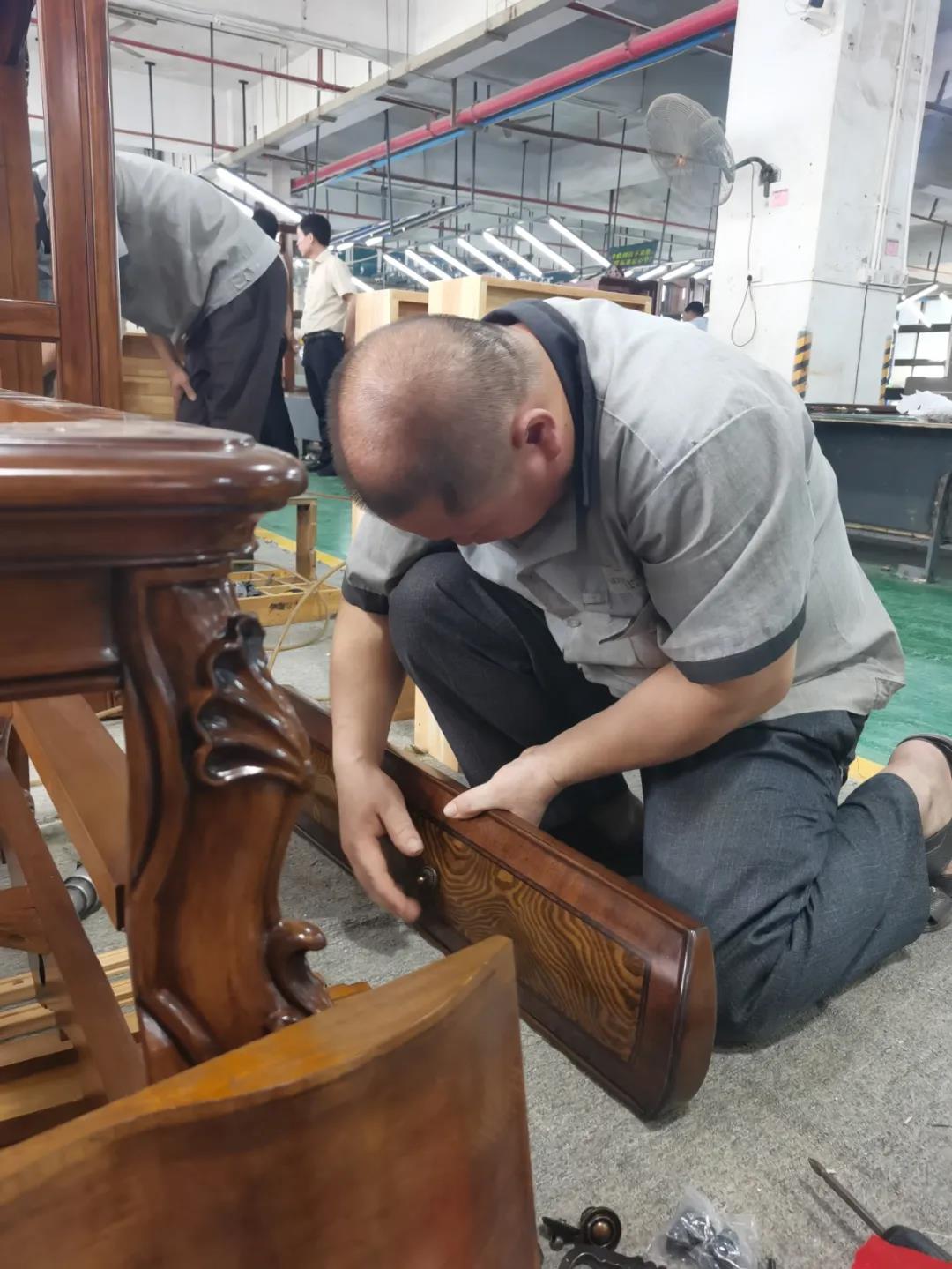 七月,一個(gè)熱情似火的季節(jié),一串串滑落的汗珠渲染著現(xiàn)場(chǎng)安靜而緊張氣氛。比賽現(xiàn)場(chǎng),來(lái)自江門(mén)金海馬商場(chǎng)和南城美新名家具商場(chǎng)的參賽選手各司其職,聚精會(huì)神地投入比賽,憑借著專(zhuān)業(yè)的技能,一絲不茍的將一個(gè)個(gè)小部件嫻熟而準(zhǔn)確無(wú)誤地組裝起來(lái),打造高質(zhì)量,細(xì)品質(zhì)的家具產(chǎn)品。